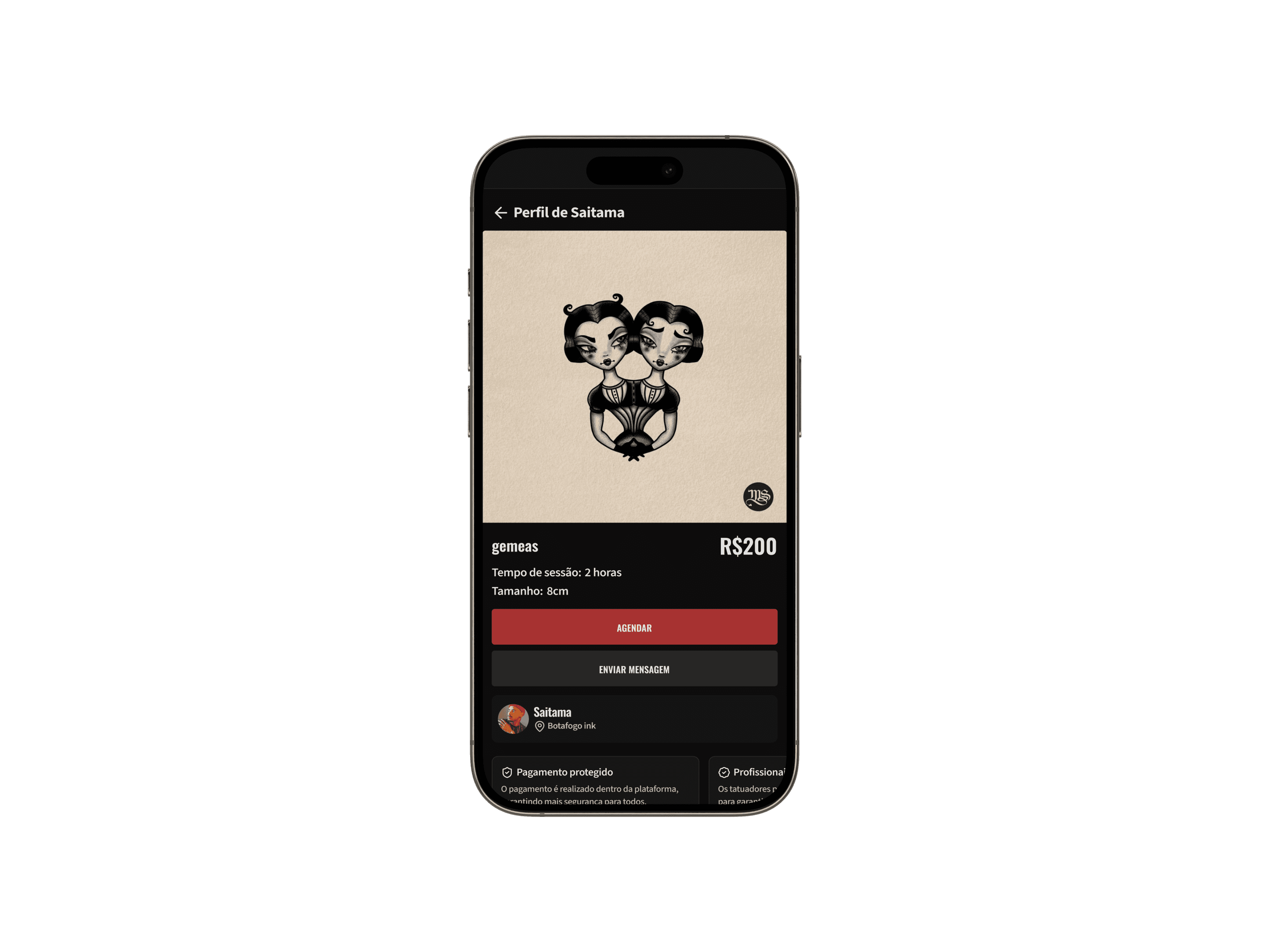 Construído com tatuadores reais, em fase inicial. Evoluindo com feedback do dia a dia.